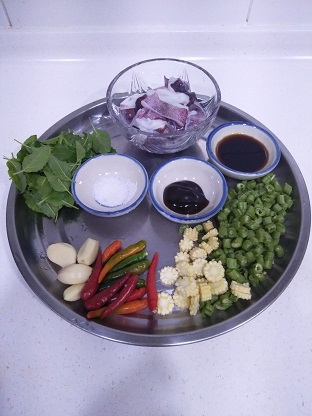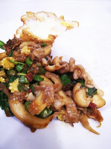 เมนูวันนี้เป็นได้ทั้งอาหารเนื้อสัตว์ทั่วไป และอาหารมังสวิรัติ พลอยศรีก็เลยปลื้มใจ เราสามารถทานมังสวิรัติอร่อยๆได้ ผัดกะเพราด้วยซอสเห็ดหอมแทนน้ำมันหอย และใช้ซีอิ้วขาวแทนน้ำปลา ในส่วนน้ำปลาพริก อร่อยได้สบายๆแน่นอนค่ะ พลอยศรีทำบ่อยๆ แต่วันนี้ใช้ซอสน้ำมันหอยเต็มที่ แต่ใช้พริกซีอิ้วขาว เพราะนั่งทานกับผู้ชายไม่อยากเอากลิ่นน้ำปลามากวนใจ อร่อยได้ไม่ยุ่งยากไร้ปัญหา คริคริ