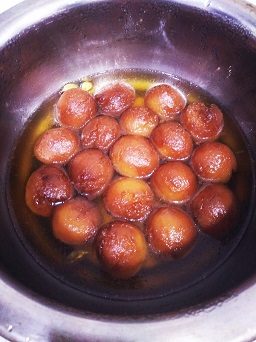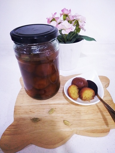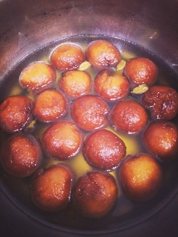 ขนมนี้ คือ กุหลาบ จามุน ค่ะ เป็นขนมลูกกลมๆสีน้ำตาลแช่ในน้ำเชื่อม เราจะเห็นทั่วๆไปตามร้านที่ขายขนม หรือร้านอาหารอินเดีย หรือตามซุปเปอร์มาเกตก็จะมีแบบกระป๋องพร้อมเปิดทานด้วยนะ เค้าขายแบบ เงาะกระป๋อง ลำไยกระป๋องเลย “ฮ่ะ ฮ่ะ” กินได้ ซึ่งตลกก็คือ บางทีผู้ชายก็ประชดที่พลอยศรีไม่ยอมทำก็เลยซื้อแบบกระป๋องมาเลย และก็จะบ่นๆอยู่ข้างๆหูค่ะว่าอร่อยมากๆเลย แต่จะดีมากถ้าทำเองนะ