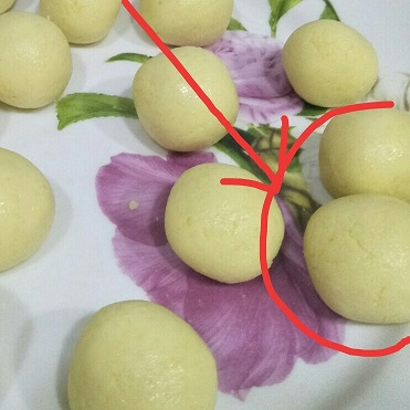 *** ขั้นตอนการปั้นสำคัญมากๆ คือ ต้องปั้นให้ลูกนั้นกลม เนียนกริบ ไม่มีรอยแตกร้าวของแป้งให้เห็นเลย เพราะถ้าปั้นแป้งไม่เนียน มีรอยแตก เวลาที่เราทอด แป้งจะพองตัว รอยแตกจะขยายปริออก ไม่สวยงาม …. ดังนั้น เราต้องดูว่าแป้งแห้งเกินไปไหม
