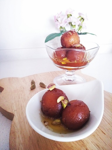 ขนมนี้ คือ กุหลาบ จามุน ค่ะ เป็นขนมลูกกลมๆสีน้ำตาลแช่ในน้ำเชื่อม เราจะเห็นทั่วๆไปตามร้านที่ขายขนม หรือร้านอาหารอินเดีย หรือตามซุปเปอร์มาเกตก็จะมีแบบกระป๋องพร้อมเปิดทานด้วยนะ เค้าขายแบบ เงาะกระป๋อง ลำไยกระป๋องเลย “ฮ่ะ ฮ่ะ” กินได้ ซึ่งตลกก็คือ บางทีผู้ชายก็ประชดที่พลอยศรีไม่ยอมทำก็เลยซื้อแบบกระป๋องมาเลย และก็จะบ่นๆอยู่ข้างๆหูค่ะว่าอร่อยมากๆเลย แต่จะดีมากถ้าทำเองนะ