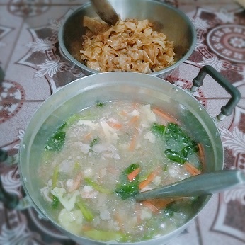 ทิ้งท้ายภาพราดหม้อโตจากแคท หม้อนี้คือตักแบ่งแจก เยอะมาก พวกเรากินกันบ้านละสามคน สี่คน ทำกันตอนบ่ายๆค่ำๆกินกันอีกรอบเราไม่รู้สึกว่าผักเละ ไม่น่ากินแต่อย่างได เพราะว่าผักไม่ถูกต้มจนเละในหม้อ และเหมือนพวกเราก็จะทำราดหน้าทุกครั้งถ้าจะต้องเลี้ยงคน เลี้ยงญาติ เพราะง่ายดี ทำทิ้งไว้ตักราดกันเอง วันนั้นเราทำทุกอย่างแยก และผสมตอนจะกิน จะตักแจก และยกไปเสิร์ฟร้อนๆ ไม่เหนื่อย ไม่วุ่นวาย พลอยศรีก็ได้เรียนรู้ไปในตัว ดีใจ