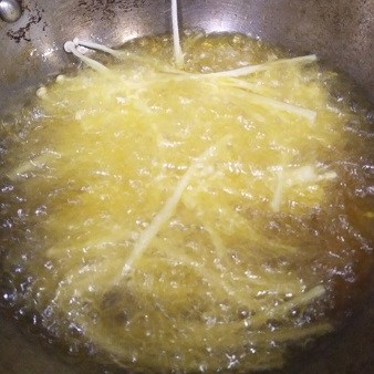 - รอจนเห็ดเหลืองทองก็ตักขึ้นพักให้สะเด็ดน้ำมัน