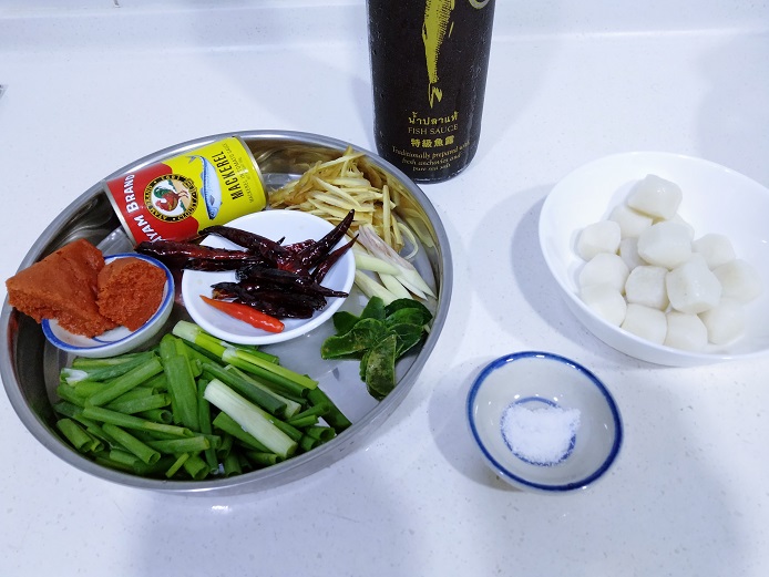 ก่อนไปลงมือทำ พลอยศรีต้องบอกเล่าก่อนว่า ในภาพมีปลากระป๋องแค่ 1 กระป๋องเนื่องจากว่าวันที่แกงวันนั้นมีปลากระป๋องในบ้านแค่กระป๋องเดียวค่ะ และพลอยศรีตั้งใจทำเผื่อวันอื่นด้วยจึงใส่น้ำเยอะหน่อยและตักแช่แข็งเลย พอวันที่จะกินเอามาอุ่นค่อยเอาปลากระป๋องมาปั่นใส่ตามเพื่อเพิ่มความเข้มข้น วันนั้นไหนๆทำแล้วมันหมดก็คิดการเผื่อเอาไว้เลย สะดวกดีค่ะ