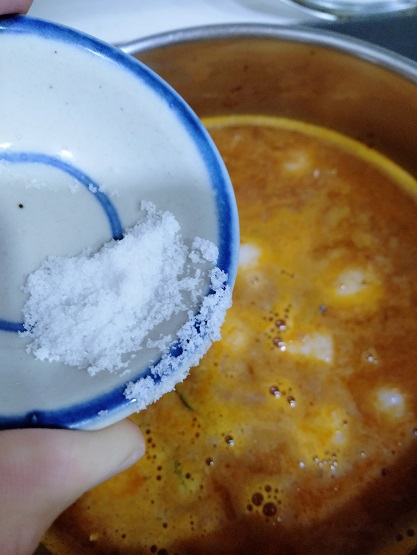 ปรุงรสตามเลย ใส่น้ำปลา(หรือน้ำปลาร้า) เกลือ ลงไป รอให้เดือด ชิมรสตามชอบ
