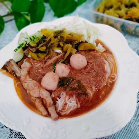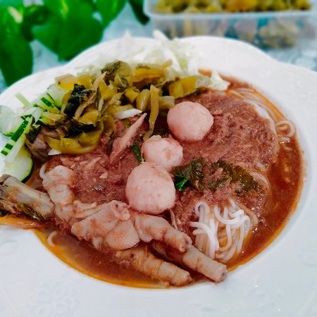 ต้มให้เครื่องปรุงทุกอย่างเข้ากันด้วยไฟอ่อนๆสัก 5 นาทีก็เป็นอันเสร็จค่ะ เพราะขาไก่ก็สุกแล้ว ปลากระป๋องก็สุกแล้ว ลูกชิ้นปลาก็ต้มสุกแล้วแค่ให้โดนความร้อนอีกทีก็ใช้ได้ สังเกตตอนใส่ไปลูกชิ้นปลาจะจม พอต้มสักครู่มันจะลอยขึ้นมาก็เป็นอันว่ากินได้
