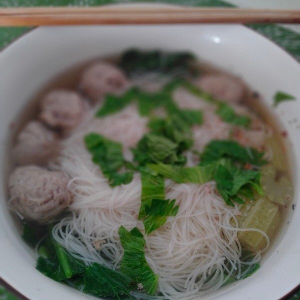 ต้มน้ำเพิ่มความหอม แล้วลวกหมี่กับลูกคะน้าใส่ชาม ตักน้ำต้มหอมๆราดลงไป ใส่ลูกชิ้นที่เราทำเอง ใส่ใบขึ้นช่ายสักหน่อย โรยกระเทียมเจียวนิด โอ้โฮ บะหมี่ลูกเนื้อน้ำใส อร่อยมากกกก