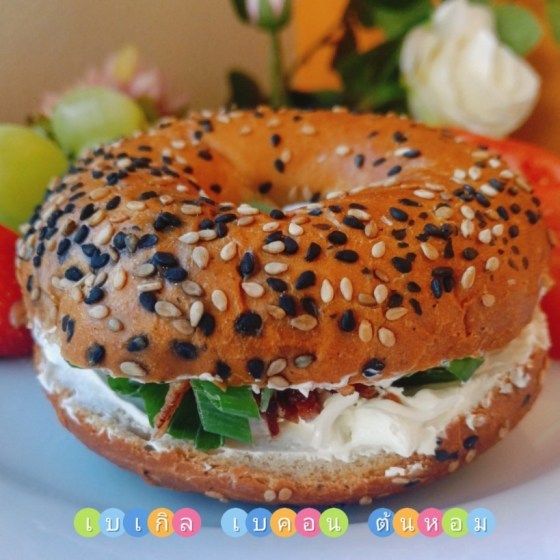 เบเกิล เบคอน ต้นหอม และครีมชีส ง่ายแต่อร่อย 🥯🥓🥗