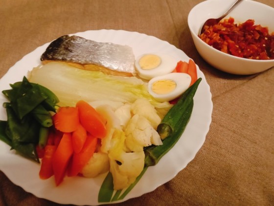 แซลมอน ผักนึ่ง พริกแจ่ว มันเผา : ลดแป้ง เน้นผัก รักสุขภาพ 🥗🌶️🍠
